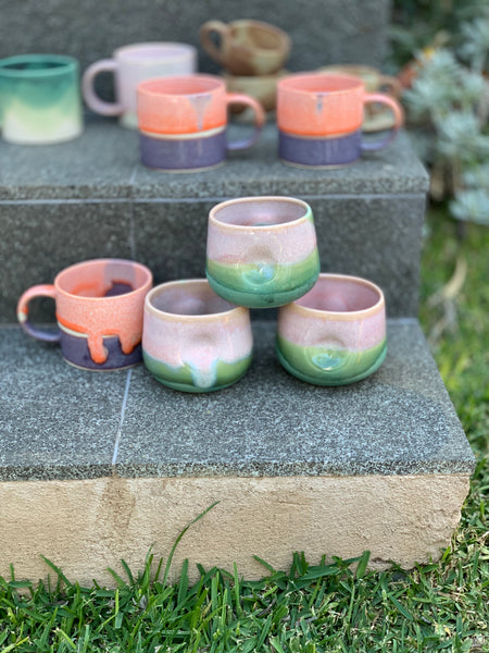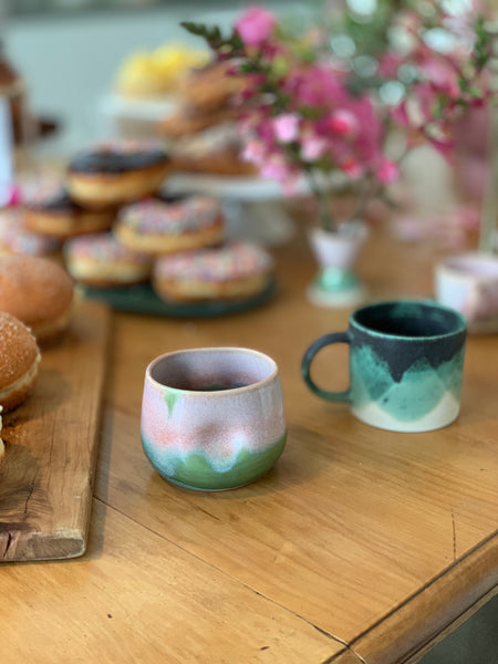 Handmade pottery is a slow and in-depth process that takes 2–3 weeks from start to finish for each batch of pottery. Every mug is designed and made by Nicole, working part-time from her sunny backyard studio, while also making time to completely switch off from her business and be with her family and two young kids.