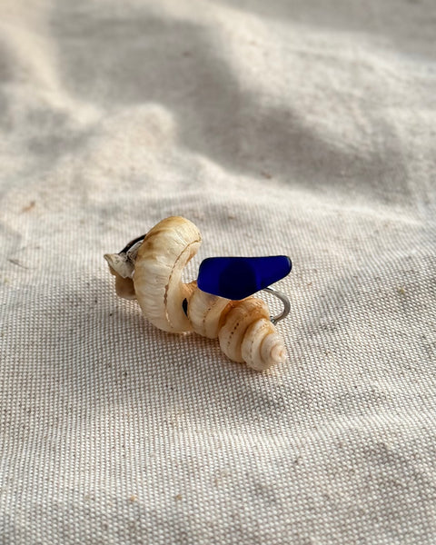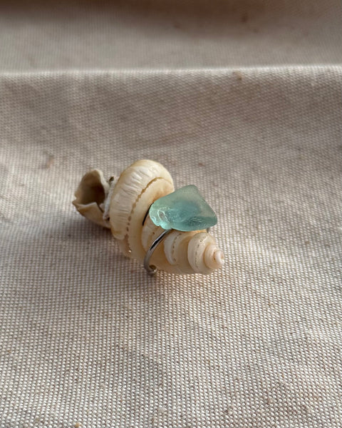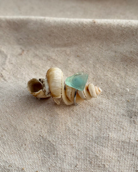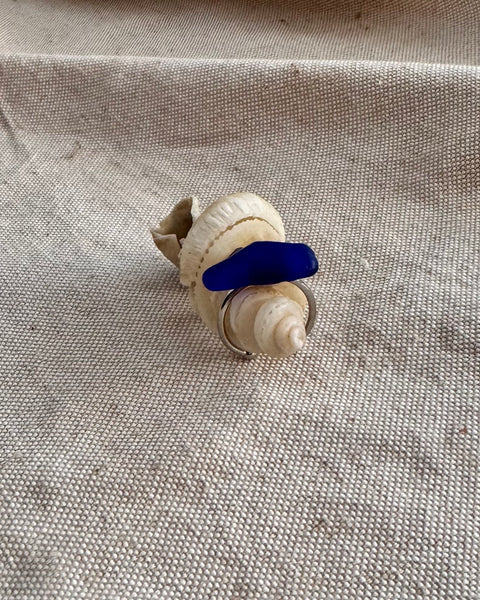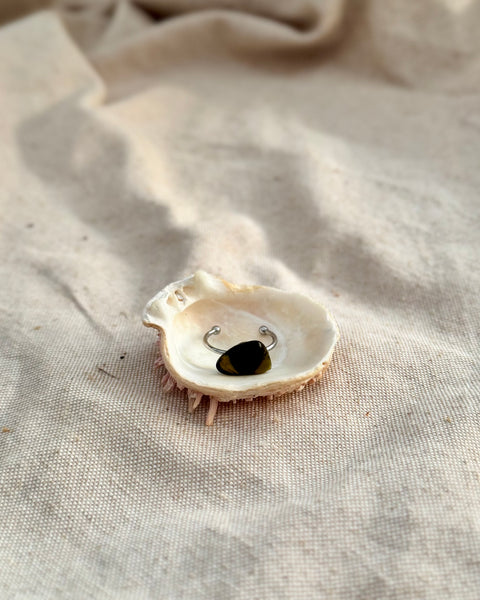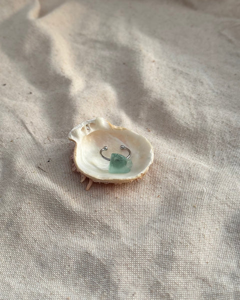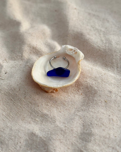 This playful, flirty ring features a piece of glass set on an adjustable stainless steel band.