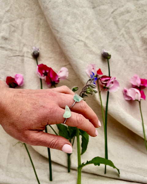 This ring is handcrafted with fused glass made from offcuts of stained glass manufacturing — giving new life to discarded materials.