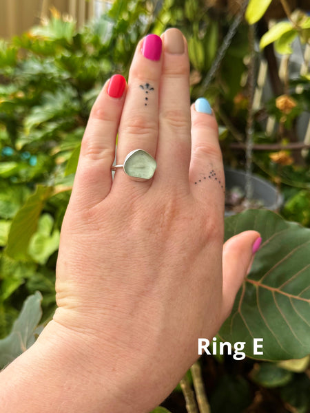 This listing includes a small collection of rings of a similar size, so you can select your favourite from the options shown. Each ring is one of a kind, shaped by the ocean over time and defined by the unique character of its sea glass.