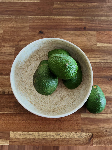 Each bowl is handmade on the pottery wheel from Australian produced Stoneware clay, fired twice and hand glazed in a unique glaze pattern.